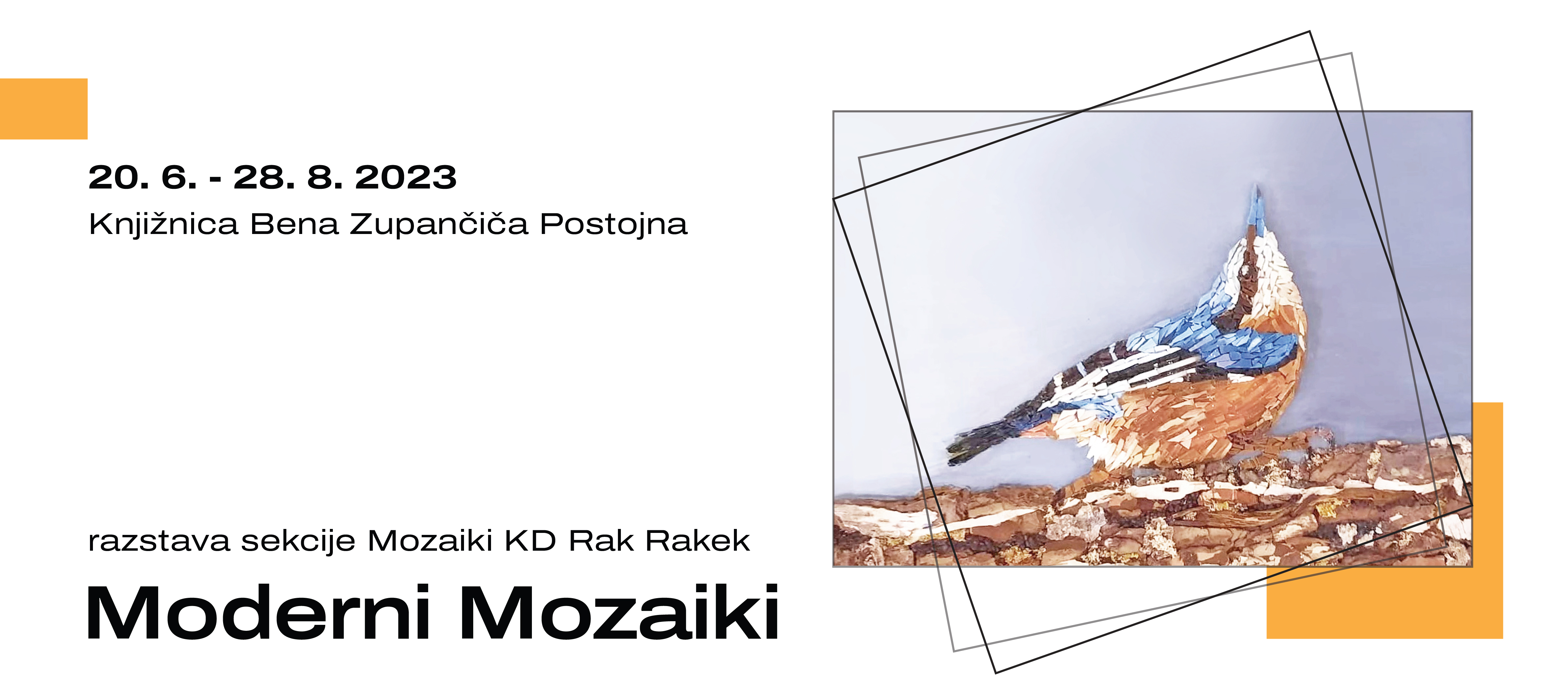 Od 20. junija do 28. avgusta je v pritličju knjižnice v Postojni na ogled razstava Moderni mozaiki KD Rak Rakek.
