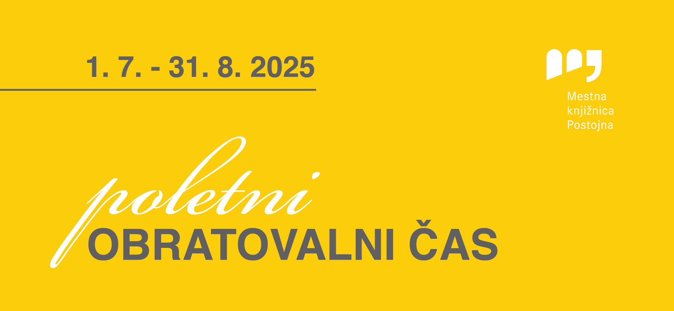 Uporabnike knjižnice v Postojni obveščamo, da s 1. julijem prehajamo na poletni urnik, ki bo veljal do 31. avgusta. Urnik knjižnice v Pivki tudi v poletnem času ostaja nespremenjen, potujoča knjižnica pa bo na počitnicah od 21. 7. do 29. 8. 2025.