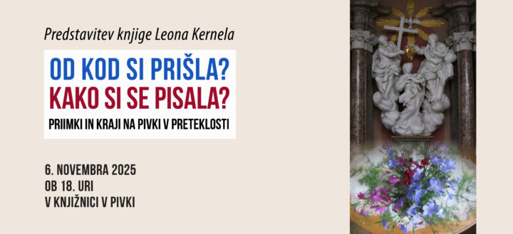 V četrtek, 6. novembra 2025, vas ob 18. uri vabimo v knjižnico v Pivki na predstavitev knjige Leona Kernela. Knjiga z naslovom Od kod si prišla? Kako si se pisala? govori o priimkih in krajih na Pivki v preteklosti.